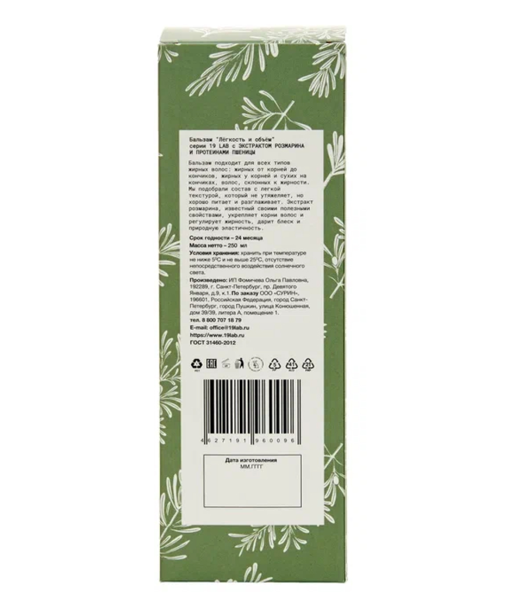 Почему стоит выбрать 19 LAB Бальзам для волос "Легкость и объем" для жирного типа волос?