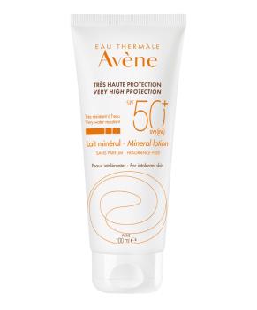 Минеральное молочко Avène Sun Care SPF 50+, не содержащее химических фильтров, отдушек и парабенов, специально разработано для кожи с непереносимостью ароматизаторов и химических фильтров, а также для раздраженной кожи взрослых и детей. Это средство обеспечивает очень широкую защиту от ультрафиолетового излучения за счет эксклюзивной комбинации активных веществ, разработанной Пьером Фабром. Пре-токоферил, предшественник витамина Е (мощный антиоксидант) для защиты клеток от свободных радикалов. Продукт богат термальной водой Avene, которая имеет успокаивающее и противовоспалительное свойства.