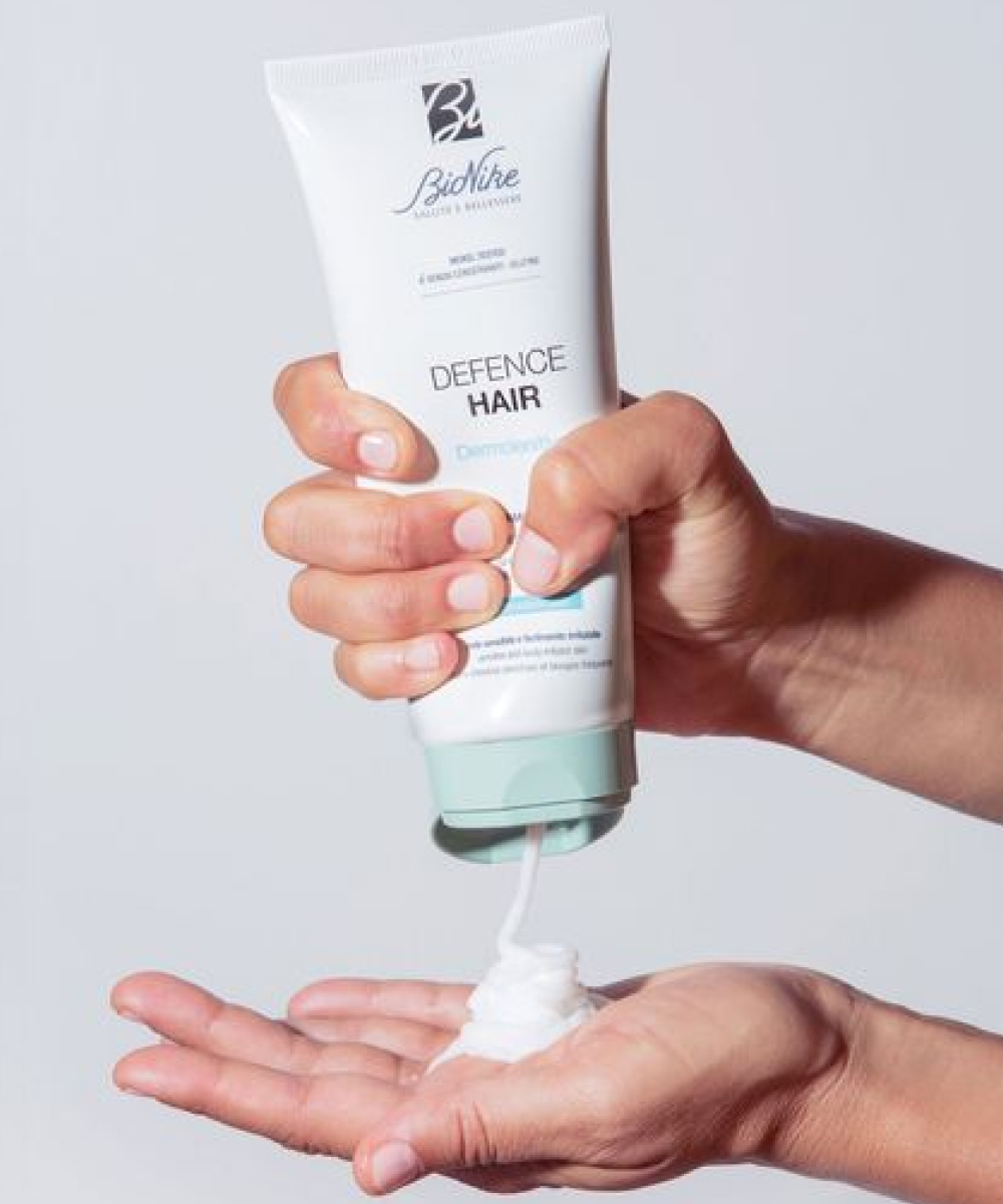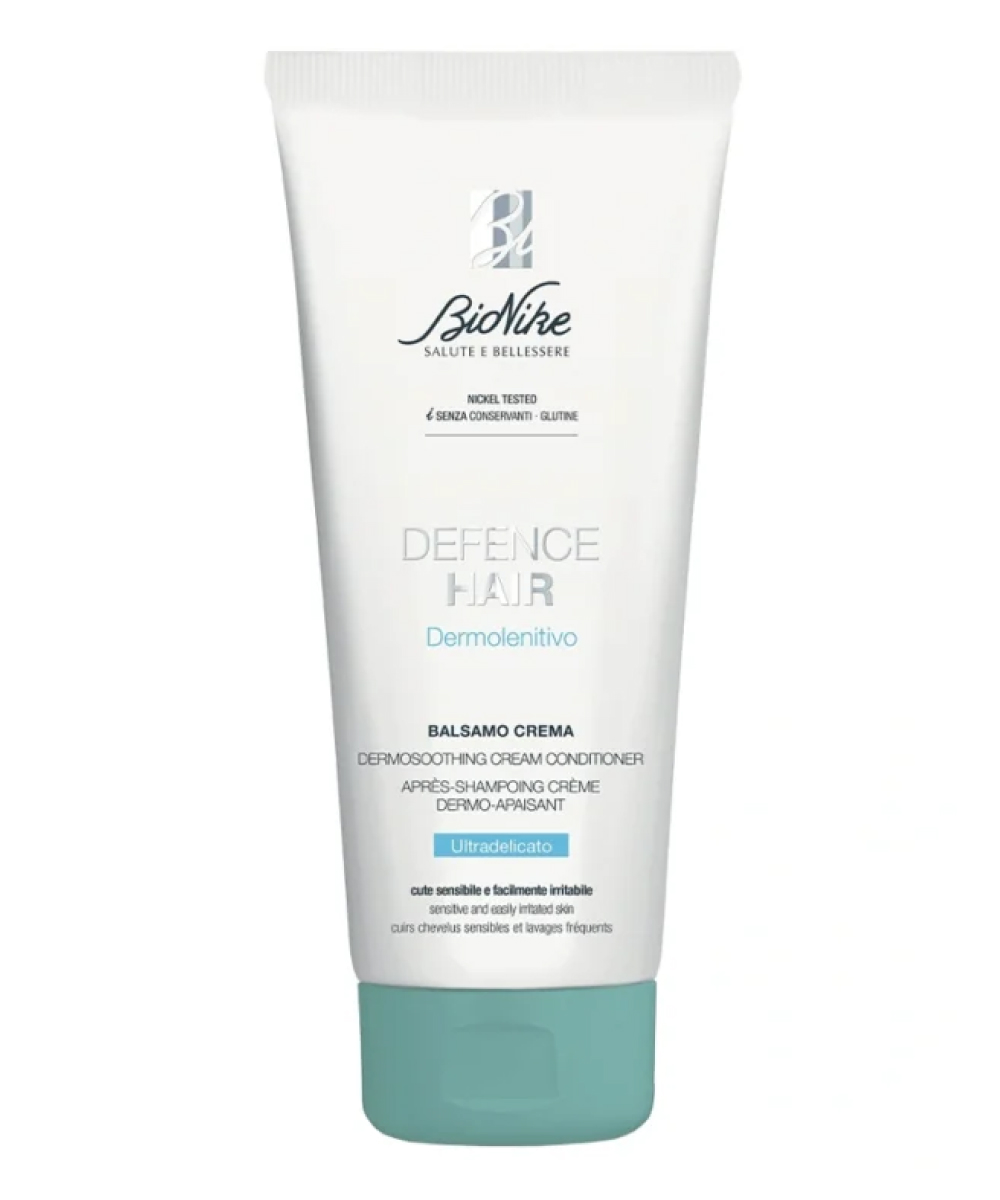 BioNike DEFENCE HAIR DERMOSOOTHING CREAM CONDITIONER — смываемый крем-кондиционер, специально разработанный для ухода за чувствительной и раздраженной кожей головы, а также для улучшения структуры волос. Средство обеспечивает легкое расчесывание, делает волосы мягкими, упругими и блестящими, при этом одновременно снимает дискомфорт и раздражение кожи головы. Крем обладает насыщенной текстурой, которая легко распределяется по длине волос и обеспечивает эффективное восстановление и защиту от внешних стресс-факторов.Преимущества
