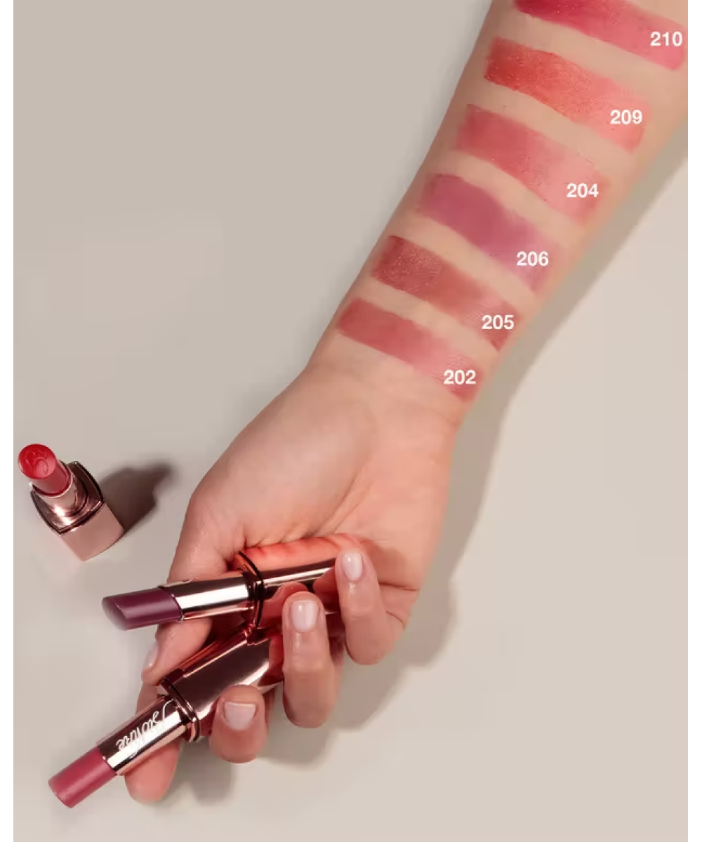 - Регулируемая плотность покрытия делает помаду универсальной для дневного и вечернего макияжа;