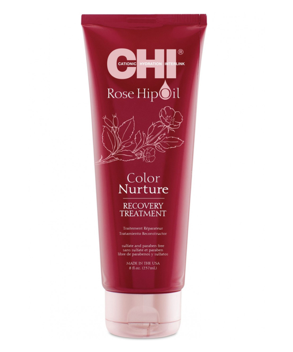 Rose Hip Oil Recovery Treatment - маска для волос, которая восстанавливает поврежденные и сухие волосы. Нежная формула с маслом шиповника укрепляет ослабшие после окрашивания волосы. Цвет остается стойким, не вымывается и не тускнеет.