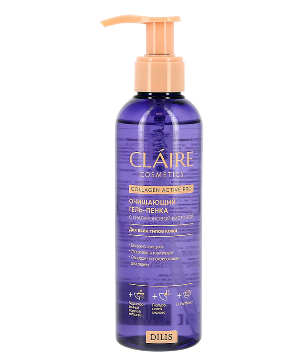 Гель-пенка Claire Collagen Active Pro — это не просто средство для умывания, а элемент системного ухода, сочетающий мягкое очищение с активным антивозрастным и увлажняющим действием. Его формула ориентирована на потребности кожи, склонной к сухости, и полностью адаптирована для ежедневного использования.- Не содержит агрессивных ПАВов и спирта