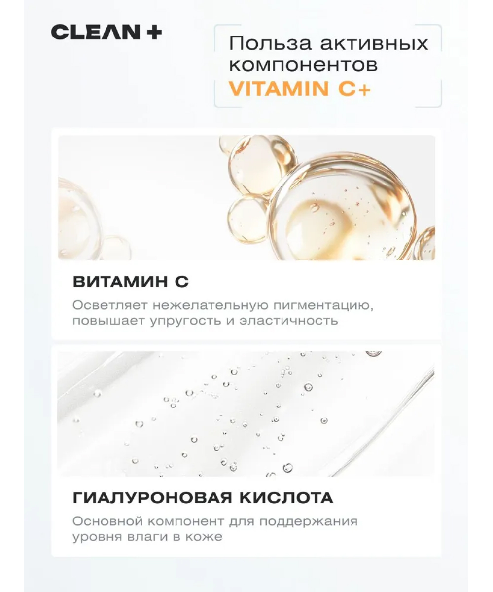CLEANPLUS VITAMIN C+ показывает высокую эффективность уже через несколько применений. При регулярном использовании кожа: