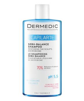 Шампунь Dermedic Sebu-balance CAPILARTE представляет собой высокоэффективное средство для комплексного ухода за кожей головы, склонной к себорее, гиперсеборее и повышенному выпадению волос. Продукт разработан на основе научно обоснованной комбинации активных компонентов, которые нормализуют работу сальных желёз, укрепляют волосяные фолликулы и стабилизируют микробиом кожи головы. Формула с физиологическим pH 5.5 обеспечивает безопасное и мягкое очищение, делая шампунь подходящим для регулярного применения при дерматологических показаниях, включая себорейный дерматит.Преимущества