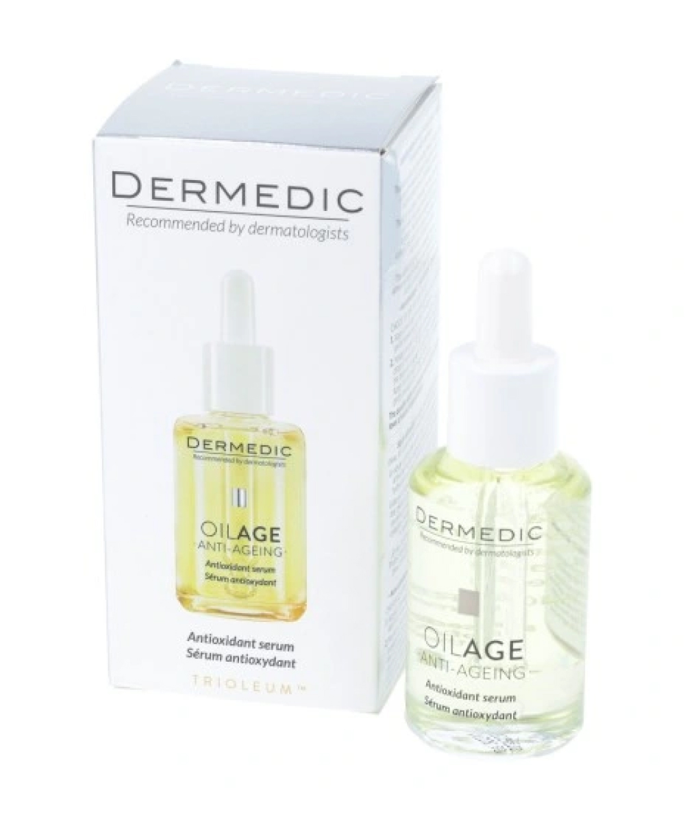 Возрастные изменения кожи требуют не просто ухода, а точечного воздействия, направленного на восстановление её структурной целостности, повышение жизненного потенциала клеток и защиту от агрессивных факторов окружающей среды. Антиоксидантная сыворотка Dermedic OILAGE создана с учётом потребностей чувствительной и зрелой кожи, подвергающейся окислительному стрессу и потерявшей прежнюю плотность. Благодаря высококонцентрированной формуле с клинически изученными компонентами, средство работает на клеточном уровне, поддерживая молодость кожи и продлевая её активную регенерацию.Преимущества