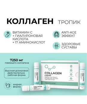 Цена на Питьевой концентрат коллагена COLLAGEN LIQUID, вкус тропик, 14 шотов, 350г