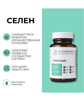 Селен от Dr.Zubareva — это максимально допустимая дозировка микроэлемента в одной капсуле, которая быстро и активно усваивается организмом, правильно им распознается и направляется в нужные места.