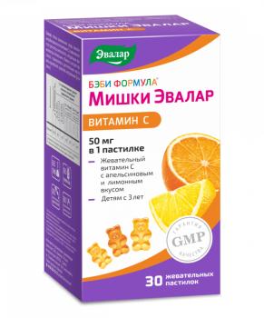 Специально для восполнения недостатка витамина С и поддержания его уровня для детей с 3 лет компания «Эвалар» разработала витаминный препарат Бэби Формула Мишки Витамин С в форме вкусных мармеладных мишек. Каждая пастилка содержит 100% суточной нормы витамина С – 50 мг.