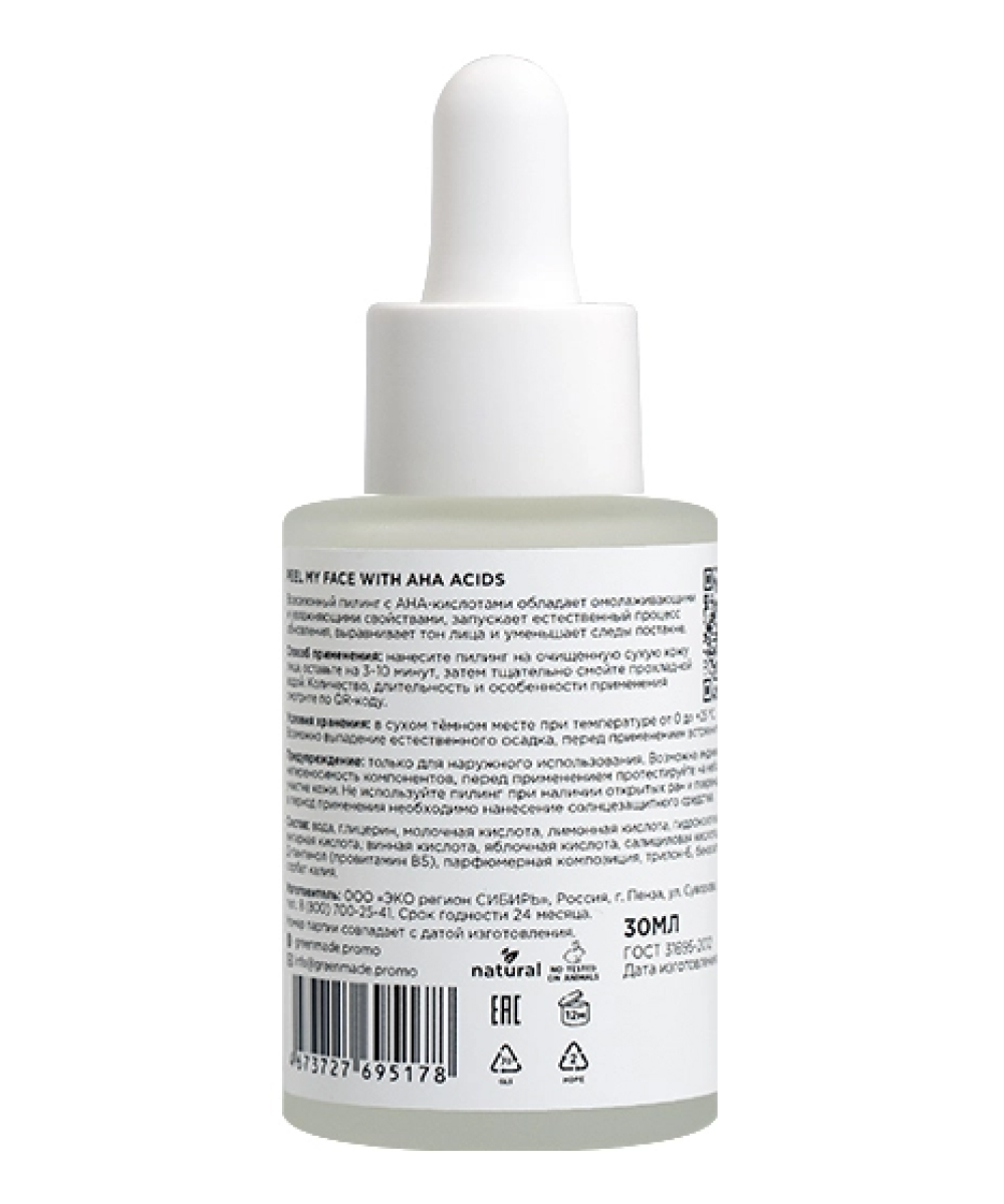 Какие проблемы решит Пилинг для лица с AHA-кислотами Peel my face with AHA Acids, 30мл Greenmade?