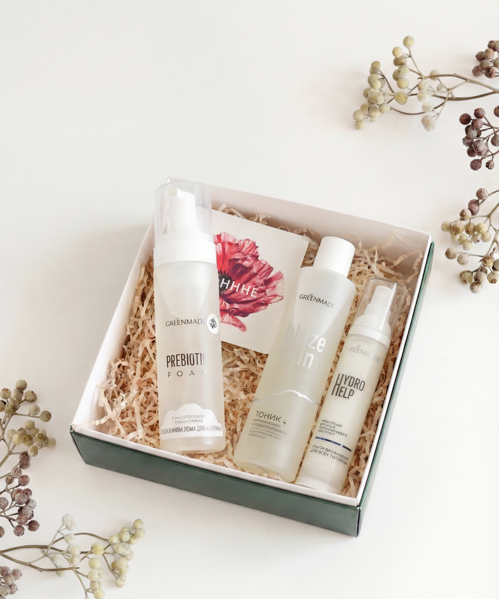 В состав набора входят:1. GreenMade Пенка пребиотическая для умывания. Гиалуроновое увлажнение Prebiotic foam, 200 мл (в ассортименте)