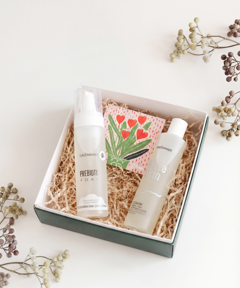 В состав набора входят:1. GreenMade Пенка пребиотическая для умывания. Гиалуроновое увлажнение Prebiotic foam, 200 мл (в ассортименте)