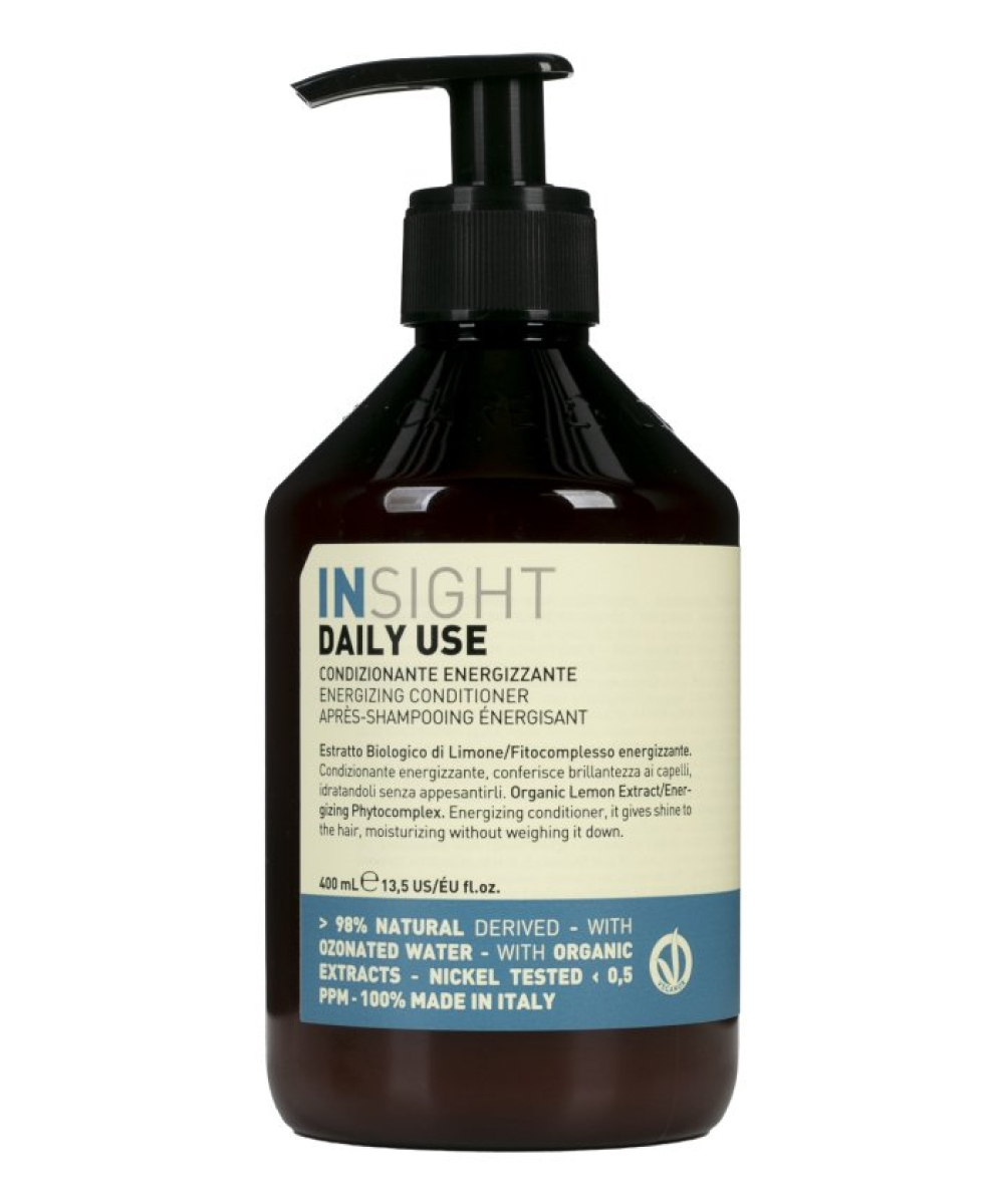 INSIGHT Energizing Conditioner — лёгкий кондиционер для ежедневного ухода, разработанный для поддержания оптимального уровня увлажнённости волос без утяжеления. Формула сочетает быстро впитывающиеся растительные масла и мягкие фруктовые кислоты при pH 3.50–4.50, что позволяет восстановить поверхность кутикулы, улучшить скольжение расчёски и вернуть прядям жизненную силу и естественный блеск. Кондиционер особенно полезен при частом мытье и для тех, кто ценит лёгкость укладки: он питает и защищает структуру волоса, не создавая эффекта «привашивания» или липкости, и совместим с большинством систем стайлинга и окрашивания.Продукт подходит для всех типов волос и может использоваться ежедневно как завершающий этап ухода после шампуня.