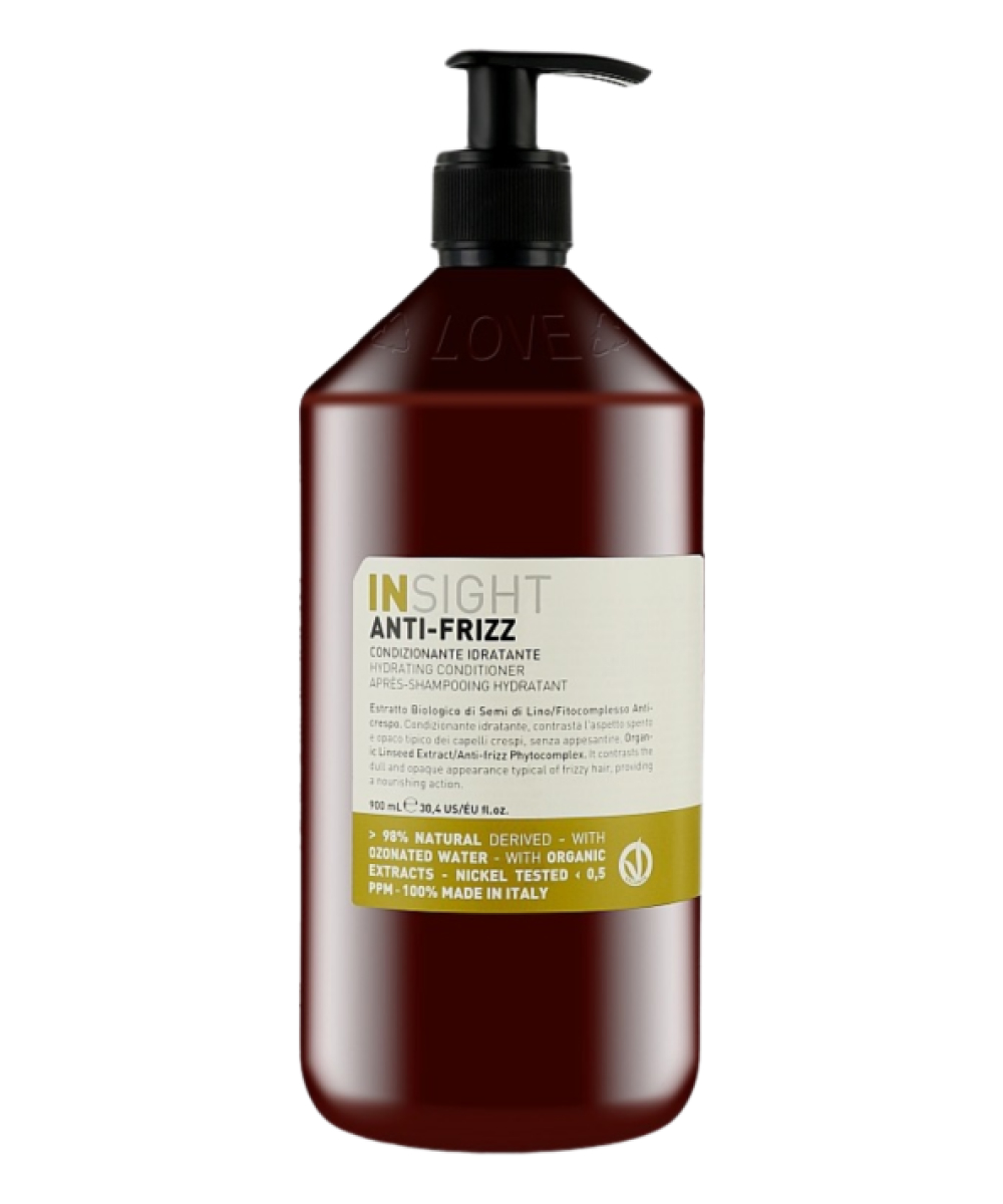 INSIGHT Кондиционер ANTI-FRIZZ HYDRATING HAIR CONDITIONER — профессиональное средство для дисциплины непослушных, пористых и вьющихся волос. Формула кондиционера сочетает интенсивное увлажнение, восстановление структуры и питание, обеспечивая мягкость, блеск и контроль над пушистостью без утяжеления. Средство подходит для волос, склонных к сухости и ломкости, а также для тусклых и поврежденных прядей, восстанавливая их эластичность и придавая естественный объем.Кондиционер разработан с учётом физиологических потребностей волос, восстанавливает кератиновую структуру, повышает упругость и защитные функции волос, одновременно облегчая расчёсывание и создавая долгосрочный эффект дисциплинированности локонов.