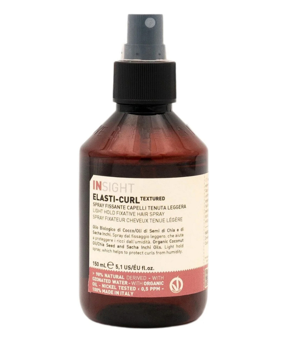 INSIGHT LIGHT HOLD FIXATIVE HAIR SPRAY разработан для тех, кто предпочитает естественный внешний вид укладки без жесткости и выраженного каркасного эффекта. Формула обеспечивает равномерное распределение, создаёт лёгкую степень фиксации и помогает сохранять форму причёски в условиях повышенной влажности. Спрей одновременно стабилизирует укладку и поддерживает оптимальный уровень увлажнения волос за счёт комбинации натуральных масел — кокосового, чиа и сача инчи. Такой подход позволяет укреплять поверхностный липидный слой, снижать электризацию и поддерживать гладкость волоса, не утяжеляя его.Средство подходит для ежедневного применения и эффективно работает как на прямых волосах, так и на волнистых и слегка текстурированных.