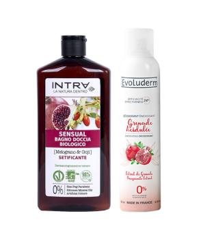 Набор включает два ключевых элемента для вашего ухода за кожей: гель для душа и дезодорант. Вместе они образуют мощную защитную барьерную систему, увлажняя и питая кожу, обеспечивая ей долгосрочную защиту от негативных внешних факторов.1. Гель для душа INTRA/Evoluderm с экстрактами граната и годжи: Этот органический гель для душа бережно очищает кожу, не нарушая ее естественный pH баланс. Экстракты граната и ягод годжи не только помогают очистить кожу, но и насыщают ее витаминами и антиоксидантами, обеспечивая интенсивное увлажнение. Ощущение мягкости и гладкости сохраняется на протяжении всего дня.