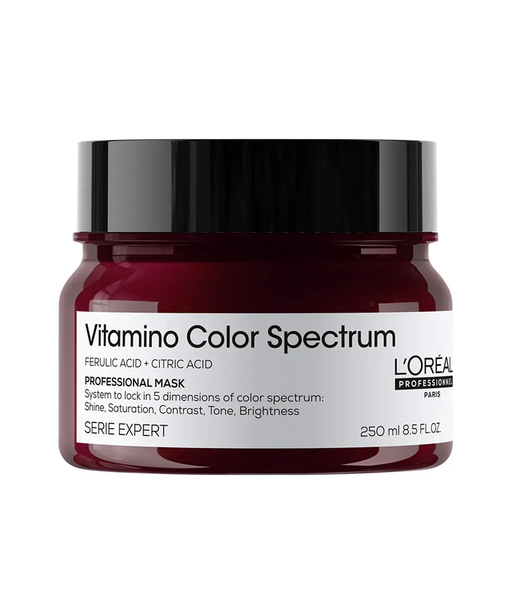 Маска для волос Vitamino Color Spectrum подарит интенсивное питание и зафиксирует безупречный цвет окрашенных волос.Её формула, обогащенная феруловой и лимонной кислотами, мгновенно окутывает поверхность волоса, обеспечивая интенсивное питание и фиксацию всех 5 параметров цвета до 100 дней: блеска, насыщенности, контрастности, яркости и оттенка.