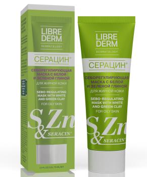 Себорегулирующая маска с белой и зеленой глиной серии «СЕРАЦИН» для жирной кожи оказывает выраженное действие и устраняет сразу несколько основных проблем жирной кожи и