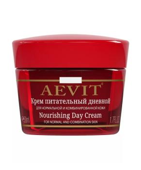 Крем питательный дневной АЕВИТ глубоко питает кожу, насыщая витаминами, увлажняет и тонизирует, оказывает антиоксидантное и регенерирующее действие, дарит коже восхитительную мягкость и сияние. Легко наносится и быстро впитывается, не оставляя жирной или липкой пленки. Подходит для нормальной и комбинированной кожи. Купаж питательных экстрактов облепихи, льна, календулы и чабреца для омоложения кожи разглаживает мелкие морщины, стимулирует синтез коллагена и эластина, замедляет процесс преждевременного старения клеток, повышает тонус кожи. Витамины А и Е эффективно увлажняют, ускоряют процессы регенерации, обеспечивают антиоксидантное воздействие. Масло карите питает, увлажняет, смягчает, успокаивает, защищает кожу, способствует ее восстановлению. Персиковое масло оказывает увлажняющее, питательное и витаминизирующее действие.