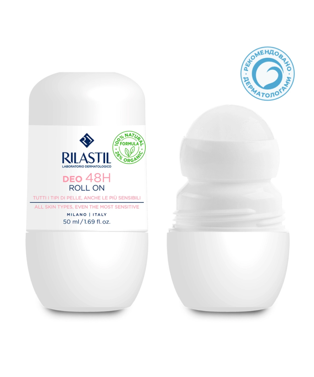 RILASTIL DEO 48H — шариковый дезодорант с клинически выверенной формулой, разработанной для эффективного контроля запаха и избыточной влажности без нарушения физиологии кожи. Средство основано на 100% натуральных ингредиентах и подходит для всех типов кожи, включая чувствительную и реактивную. Формула направлена на регуляцию микрофлоры, а не на блокирование естественных процессов, что позволяет сохранять кожный баланс даже при ежедневном применении. Дезодорант обеспечивает пролонгированное действие до 48 часов и одновременно поддерживает состояние кожи в зоне подмышек.Преимущества