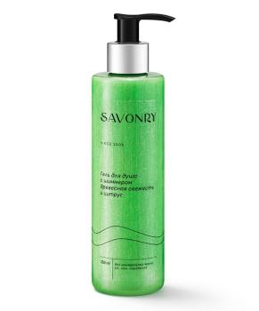 SAVONRY гель для душа с шиммером Древесная свежесть и цитрус сочетает мягкое очищение с увлажнением и тонким сиянием кожи. Средство создано на основе мягких ПАВ растительного происхождения, которые эффективно удаляют загрязнения, не нарушая естественный липидный слой кожи, образуя густую и нежную пену. Аромат геля сочетает свежие цитрусовые ноты с теплыми древесными оттенками, создавая бодрящий и освежающий эффект, а легкий шиммер придает коже мерцающий, ухоженный вид. Активные компоненты обеспечивают питание, восстановление и мягкость кожи, поддерживая её естественное сияние.Преимущества