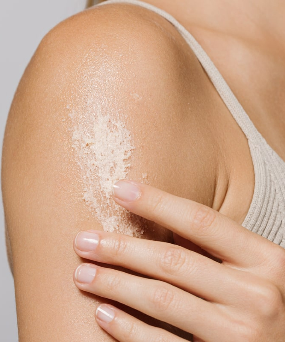 - Сахарные кристаллы — мягкий эксфолиант растительного происхождения, который постепенно растворяется в процессе массажа, обеспечивая контролируемое отшелушивание и снижая риск микроповреждений кожи.