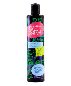 Selfielab Шампунь для объема и густоты волос MY GOLOVA — деликатное ежедневное очищение кожи головы с эффектом push-up у корней, укреплением и визуальным уплотнением полотна волос; формула ориентирована на ослабленные и тусклые волосы, подходит для всех типов, придает упругость и сияющий блеск.Преимущества