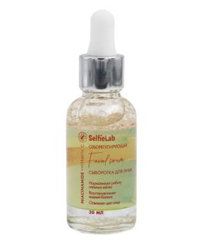 Selfielab Сыворотка для лица себорегулирующая Niаcinamide + Vitamin C — высококонцентрированная формула для контроля выделения себума, восстановления водного баланса и выравнивания тона кожи; предназначена для жирной, комбинированной и чувствительной кожи; текстура легкая, быстро впитывающаяся и совместимая с дневными средствами ухода и макияжем.Преимущества