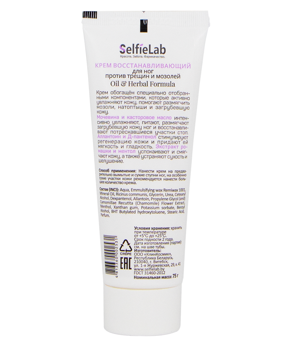 Почему стоит выбрать Selfielab Крем для ног восстанавливающий против трещин и мозолей Oil & Herbal Formula?