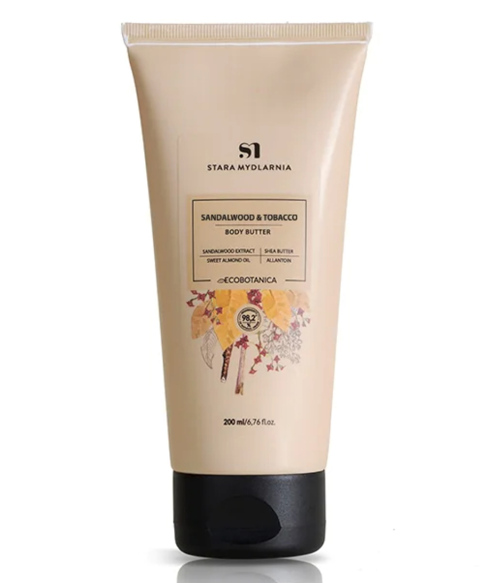 Stara Mydlarnia Масло для тела "Сандаловое дерево" ECOBOTANICA SANDALWOOD BODY BUTTER создано для полноценного ухода за кожей, требующей питания, увлажнения и восстановления. Его богатая натуральная формула обеспечивает глубокое проникновение активных компонентов, укрепляет кожный барьер, повышает эластичность и мягкость кожи. Масло эффективно поддерживает здоровье кожи, возвращает ей комфорт и естественное сияние, сочетая уход и защиту в одном продукте.Преимущества