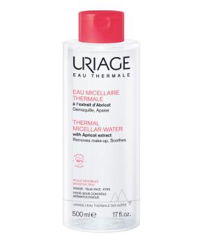 Uriage Eau Thermale Micellar Water Peaux Sensibles – очищающая и успокаивающая мицеллярная вода, предназначенная для чувствительной кожи и контура глаз. Средство мягко удаляет загрязнения и макияж, увлажняет и предотвращает появление покраснений. Формула с термальной водой Урьяж, экстрактом абрикоса и глицерином способствует заживлению кожи, устраняет раздражения и дарит комфорт. Физиологический pH, гипоаллергенная и некомедогенная формула подходит для ежедневного ухода.- Мягкое очищение – бережно удаляет загрязнения и макияж