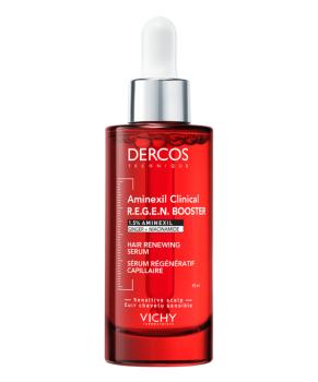 VICHY DERCOS Technique Aminexil Clinical R.E.G.E.N. BOOSTER — инновационная укрепляющая сыворотка нового поколения, созданная на основе 30-летних научных разработок бренда. Средство направлено на борьбу с выпадением волос и стимуляцию их роста за счёт высокой концентрации аминексила (1,5%) и комплекса активных ингредиентов, включая экстракт имбиря и ниацинамид. Клинически доказано: регулярное применение способствует появлению до +14 000 новых волос, увеличивает объём и укрепляет волокно по всей длине. Сыворотка отличается лёгкой текстурой, быстро впитывается, не утяжеляя волосы и не оставляя следов, а специальный аппликатор обеспечивает точное нанесение на кожу головы.Преимущества