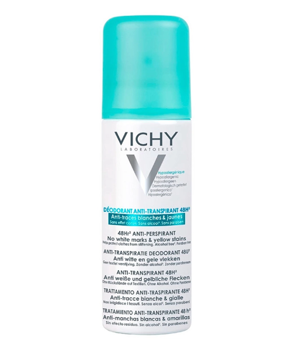 Какие проблемы решит Дезодорант-антиперспирант спрей против белых и желтых пятен 48ч, 125мл VICHY?