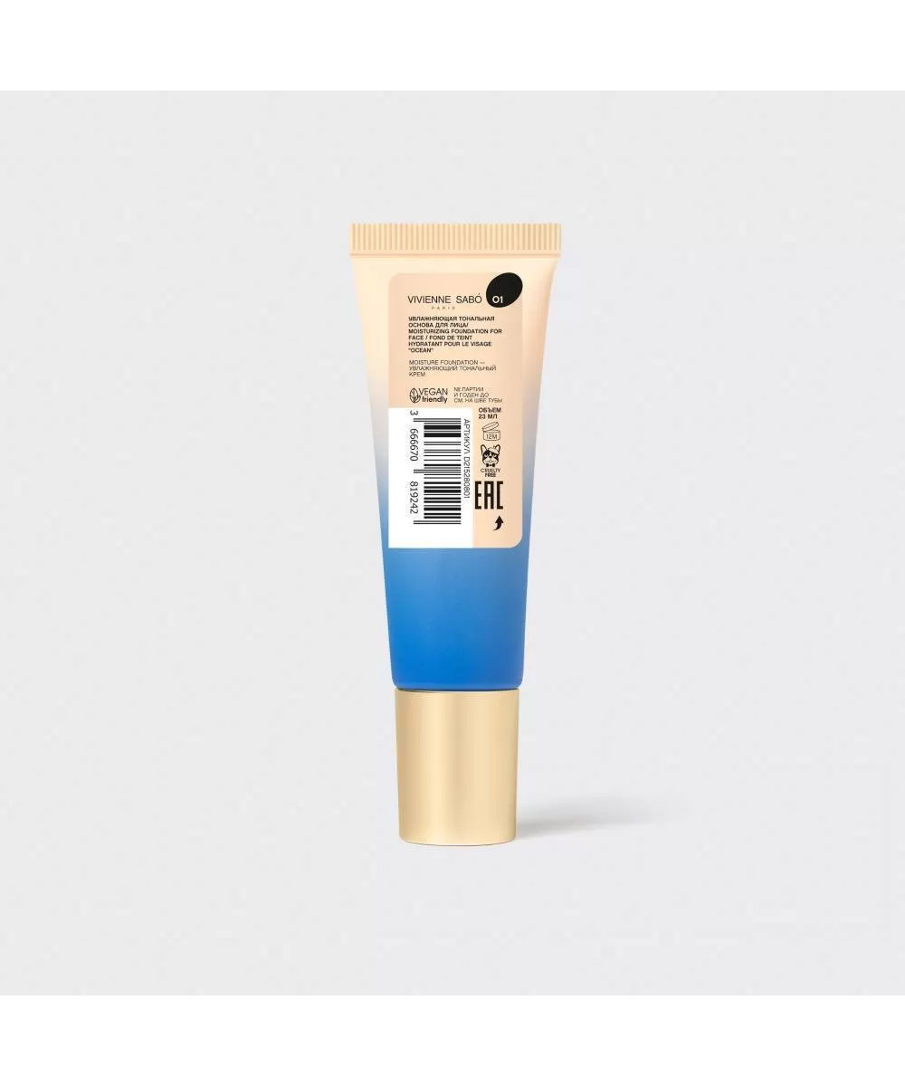 Цена на Vivienne Sabo Тональная основа для лица увлажняющая "Ocean", тон 01: светло-бежевый, 23 мл, 23мл